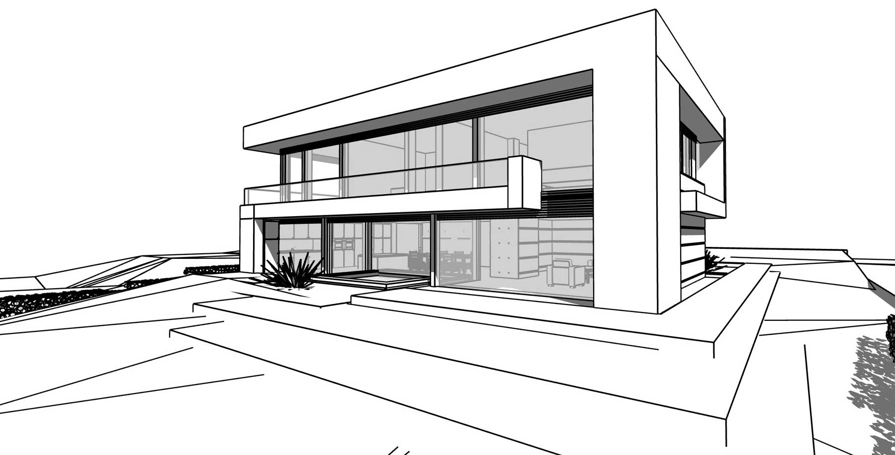 Im traditionsreichen Leutzscher Villenviertel entstand dieses moderne Wohnhaus, das sich rücksichtsvoll in die gewachsene Umgebung einfügt. Das leicht geneigte Grundstück wird von zwei alten, unter Naturschutz stehenden Bäumen geprägt, die sorgfältig in die Planung integriert und als Teil des Gartens inszeniert werden.