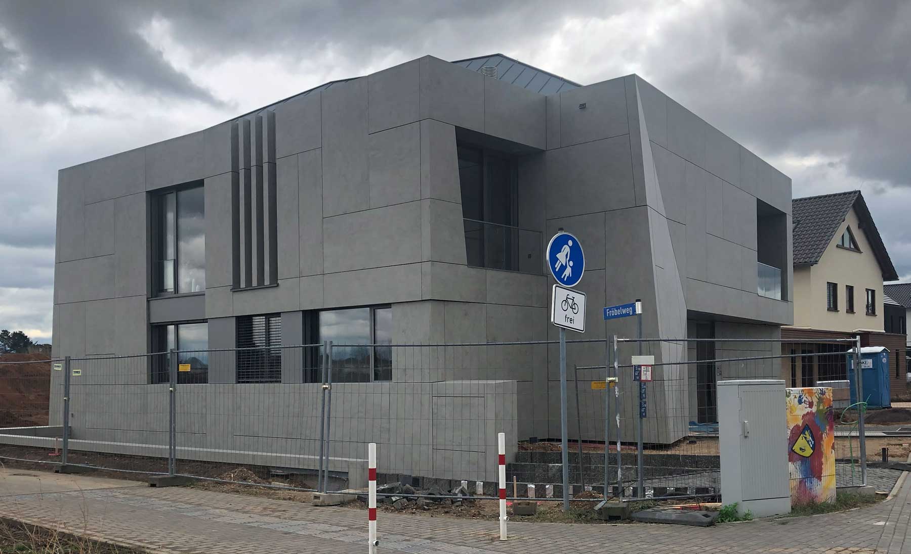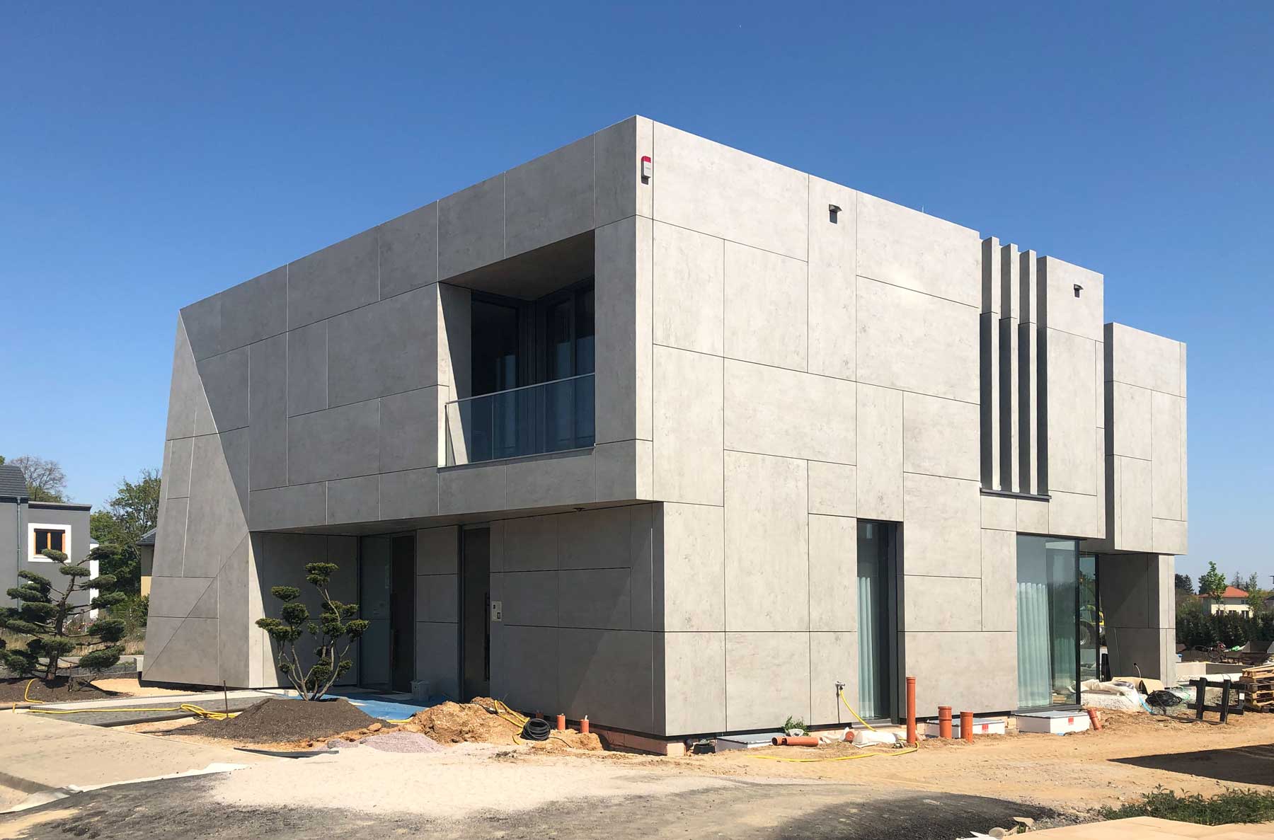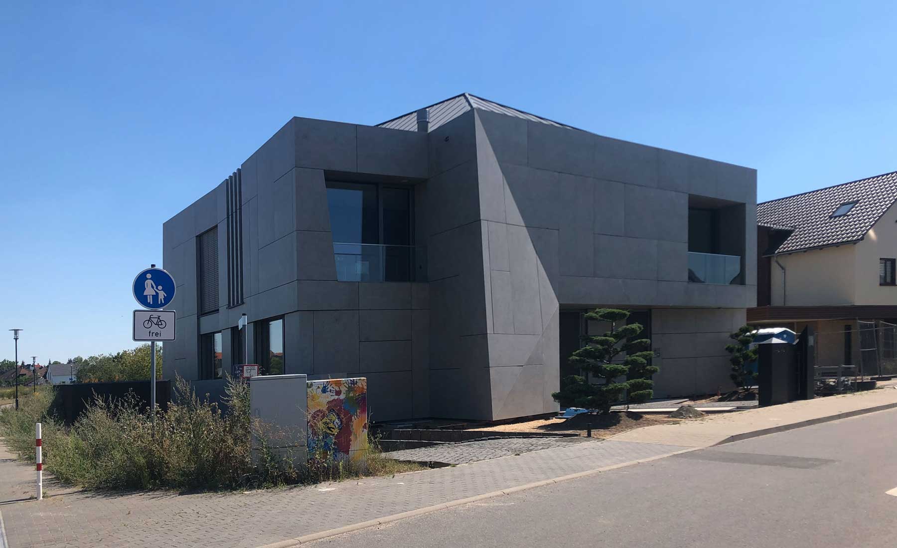 Einfamilienhaus mit futuristischer Fassadengestaltung