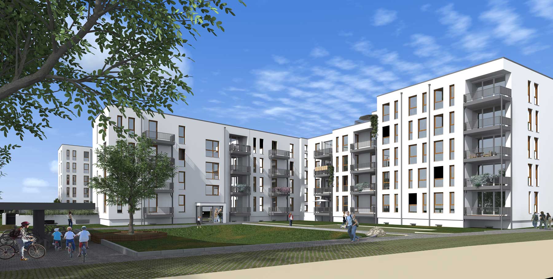 Wohnquartier mit Tiefgarage und Parkanlage