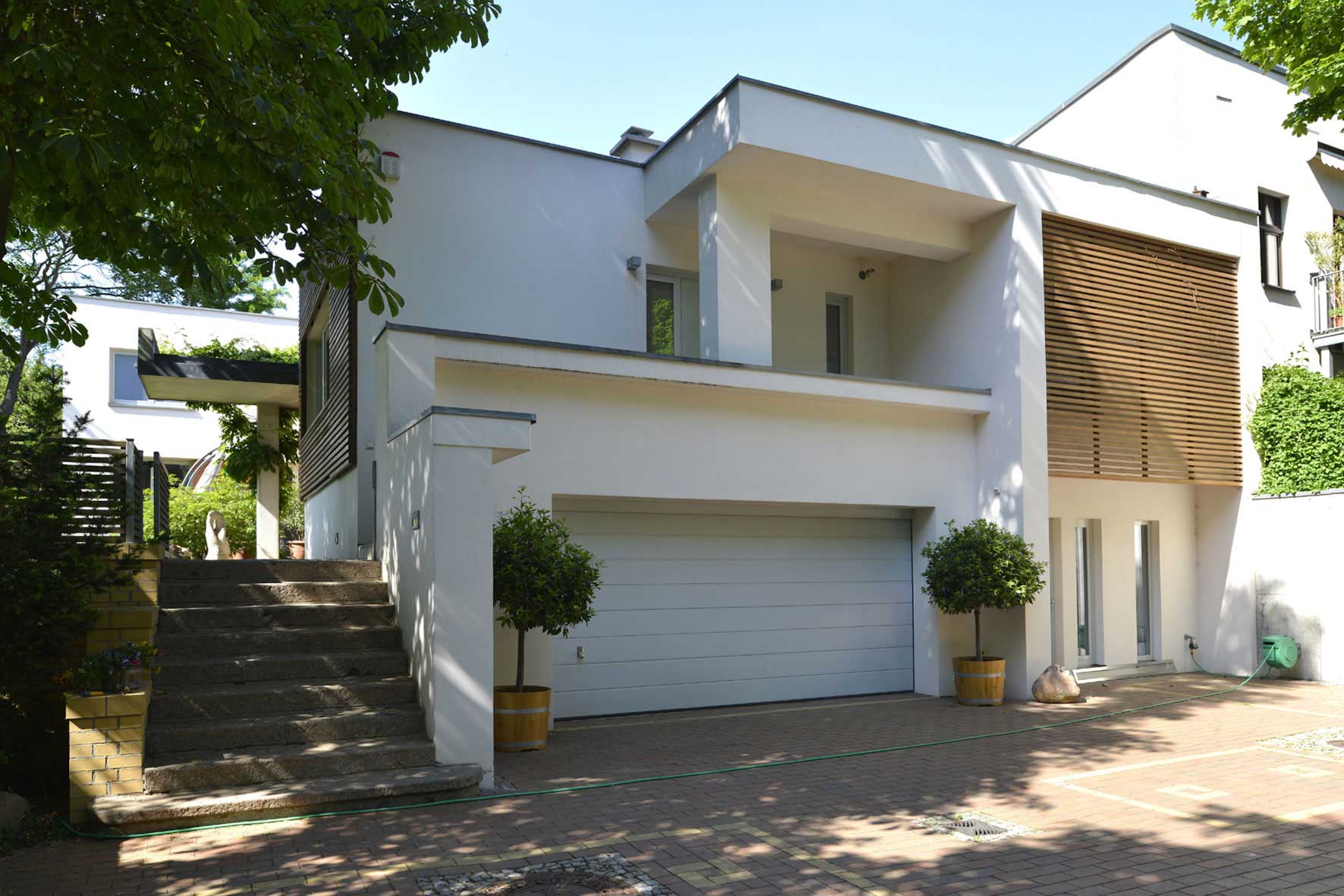 Ein separater Zugang erschließt Gästewohnen und Arbeitsbereich, wodurch eine konsequente funktionale Trennung auch innerhalb des Hauses ermöglicht wird.